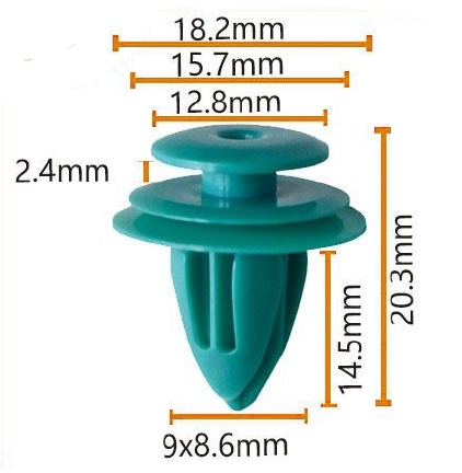 Elke Quepei -bevestigingsvermogen heeft precieze afmetingen die rigoureus zijn getest om te zorgen voor een perfecte pasvorm met uw GM -voertuig. De lengte van 20,3 mm, breedte van 9,6 mm en gatdiameter van 8,6 mm. Het hoge sterkte groene plastic materiaal wordt gekozen vanwege zijn duurzaamheid, weerstand tegen slijtage en het vermogen om extreme temperaturen en omstandigheden te weerstaan.